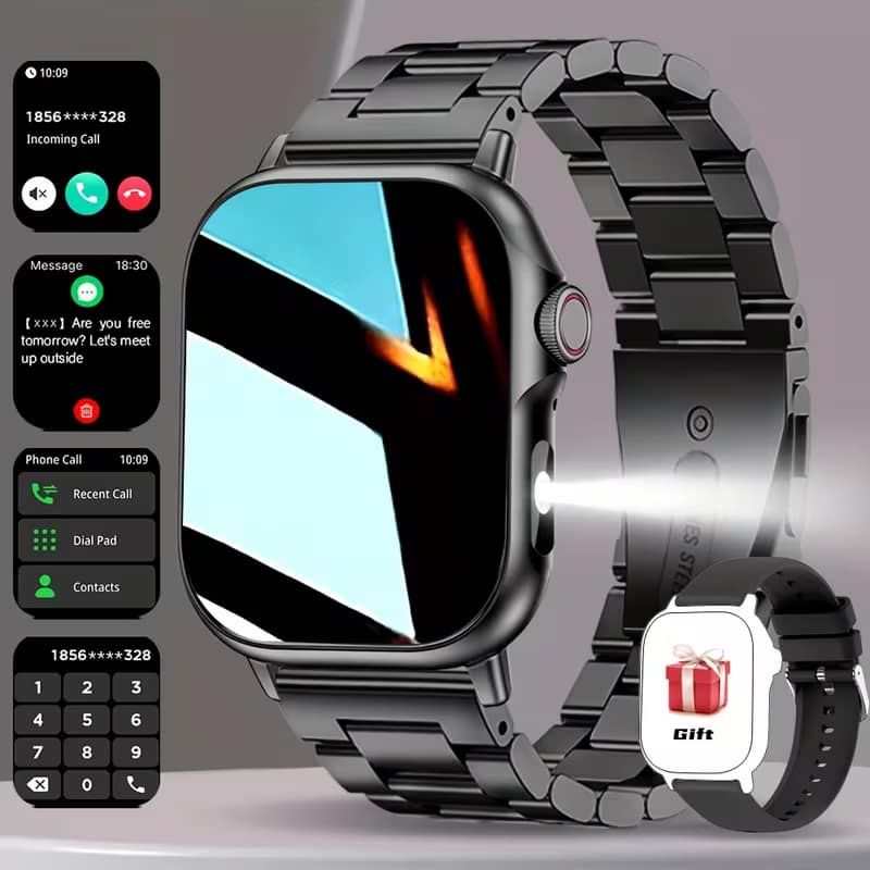 This high-end smartwatch features a large 1.83-inch touchscreen that delivers clear visuals and smooth touch response for effortless operation. Paired with a stylish, comfortable strap, it’s designed for both daily wear and active lifestyles.
