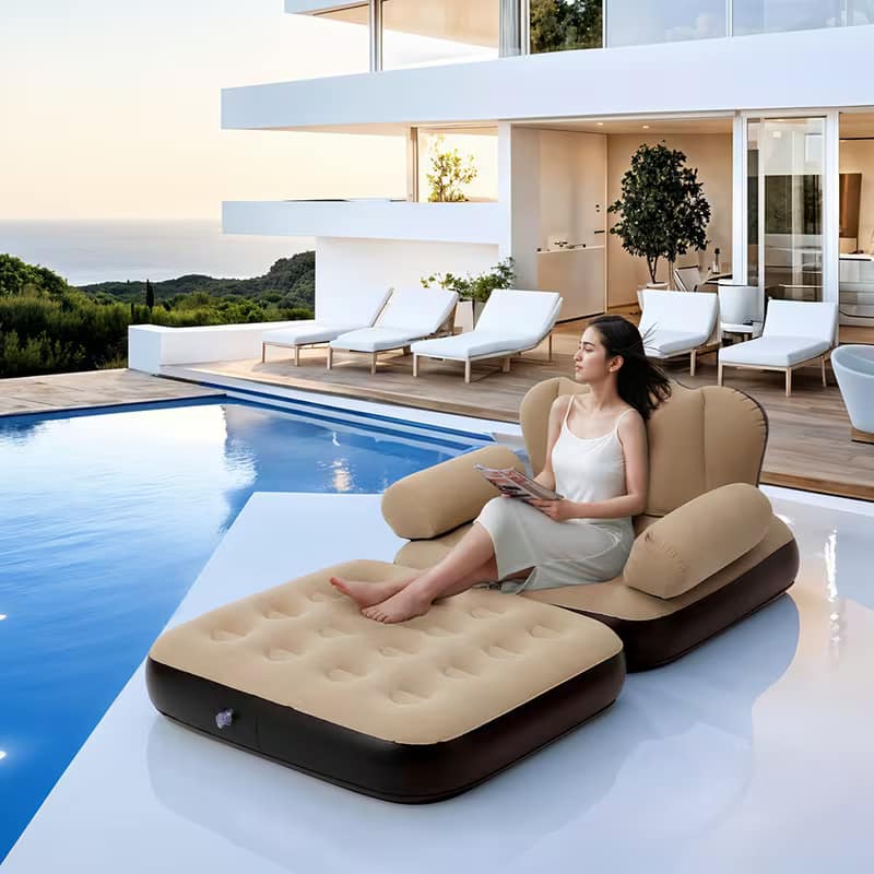 Made from flocked PVC, the surface feels smooth and soft while staying tough enough to resist punctures. It supports up to 220 lbs (100 kg) and handles regular use without losing shape. Inflation is simple—use a foot pump or blow manually. Once filled, it stays firm until you’re ready to pack it away. Deflating and transporting it is quick, making it suitable for gardens, camping trips, festivals, or fishing outings.